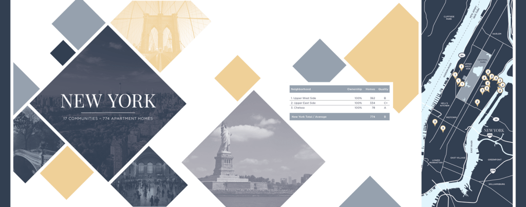 Aimco Apartment Homes is a property management company, with over 100 apartment buildings. The following designs were created in collaboration with lead designers, marketing coordinators and the investor relation team.