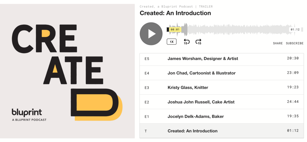Created is a podcast presented by Bluprint, a subsidiary of NBCUniversal. During each episode, listeners learn from the designers, creators, doers and makers… who made it.