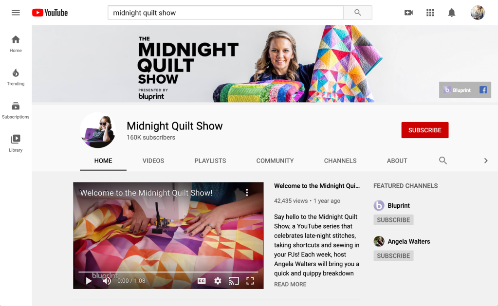 Man About Cake and The Midnight Quilt Show are YouTube Channels presented by Bluprint, a subsidiary of NBCUniversal.