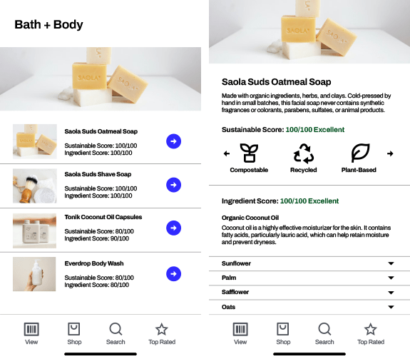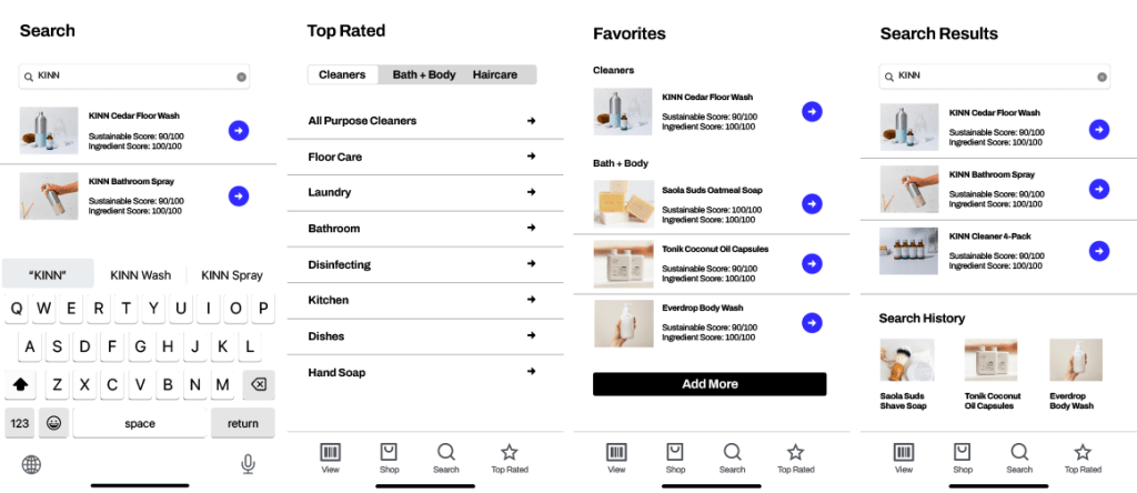 Mindful Goods is an app for users who want to shop for household goods that align with their values. Within the app, users can search everyday products for sustainable and clean ingredient ratings, as well as access a curated e-commerce selection.