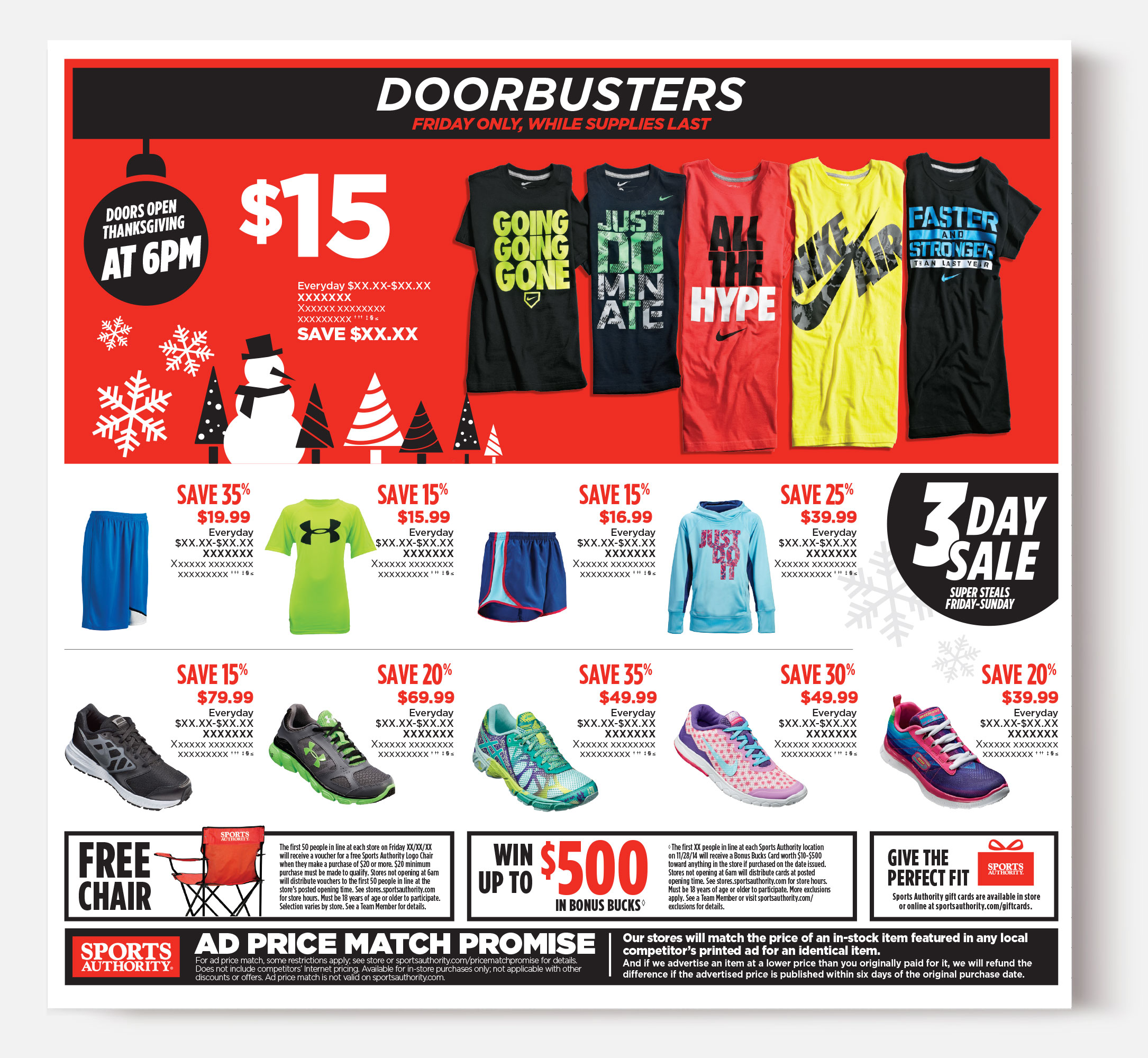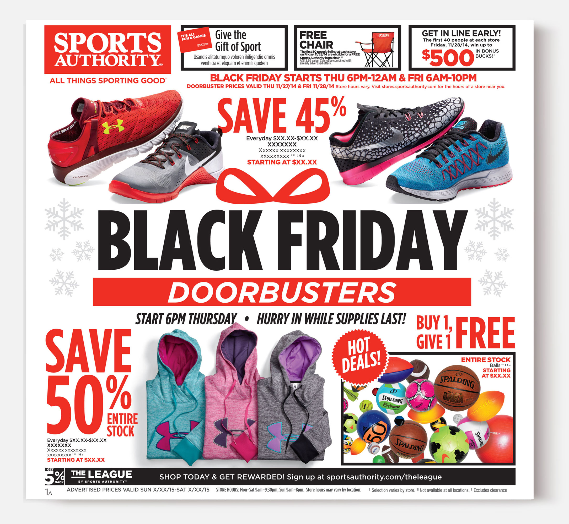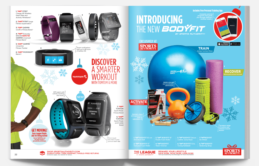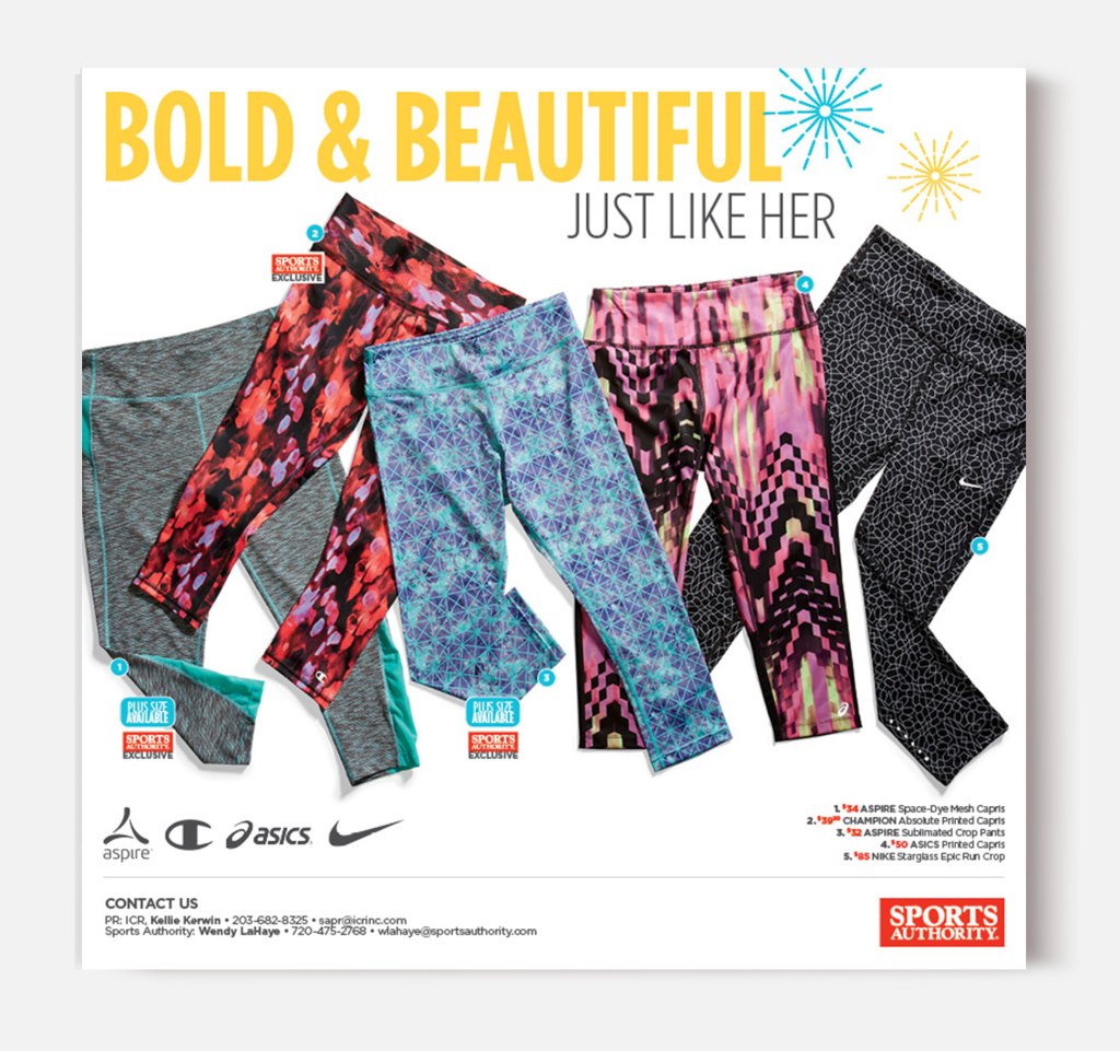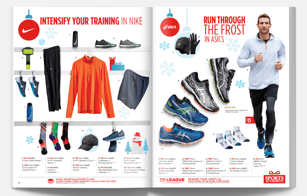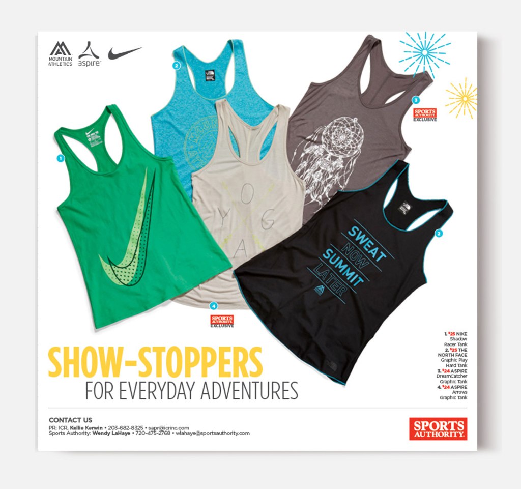 Sports Authority was a sporting goods retailer headquartered in Denver, Colorado. The following pieces are merchandise-forward designs and quarterly campaigns.